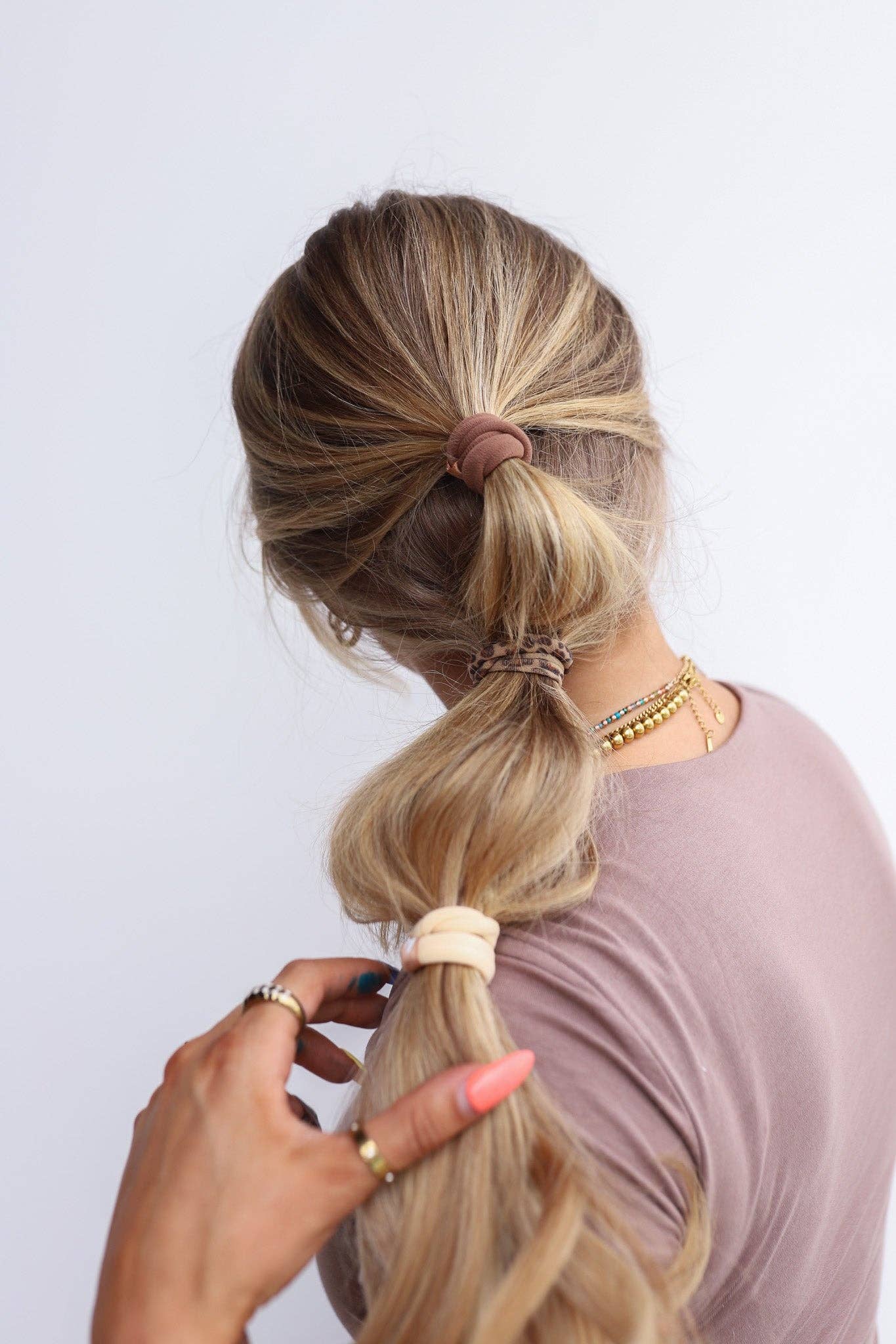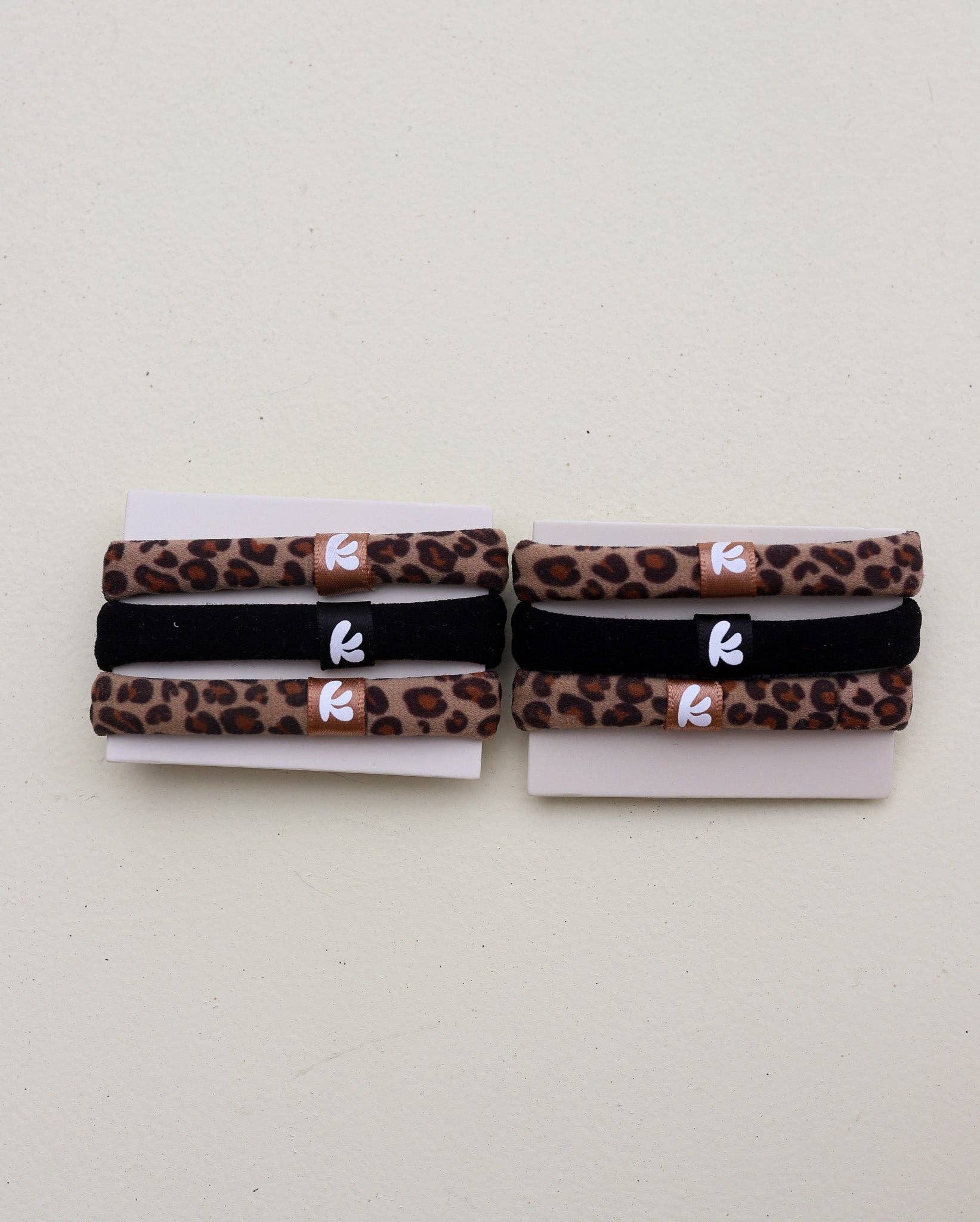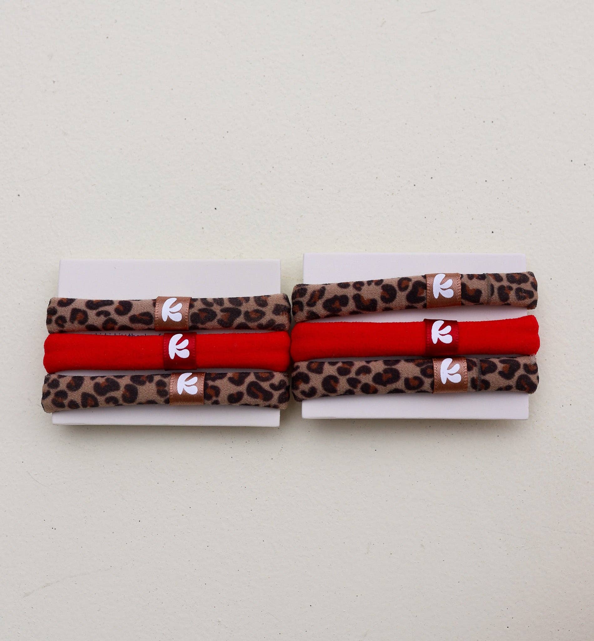 New skinny KAXI high intensiTIES!!!! New and improved. The little sister to the 'high intensity hair ties'.. a bestseller! The skinny high intensiTIES are for you with shorter or thinner hair. Just as strong, made in a healthy nylon material, but now in a smaller version. These come in cheetah and solid color combos all completed with our very own KAXI logo on it!! Crafted with a durable yet snug nylon material, these hair ties are designed to keep your hair in place without tugging or causing pain. They are perfect if you need a tight elastic for your high intensity workout, but still offer a stylish look and this elastic is just fabric with no elastic on the inside to damage your hair. Say goodbye to breakage around your face. Works for thin to thick hair! Perfect for pool days, high intensity workouts, or everyday use! All come in a custom kaxi reusable case for the hair ties!