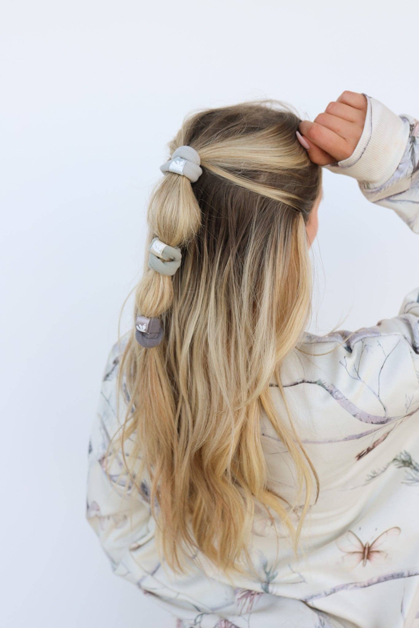 Our best selling KAXI high intensiTIES!!!! These come in solid colors all completed with our very own KAXI logo on it!! Crafted with a durable yet snug nylon material, these hair ties are designed to keep your hair in place without tugging or causing pain. They are perfect if you need a tight elastic for your high intensity workout, but still offer a stylish look and this elastic is just fabric with no elastic on the inside to damage your hair. Say goodbye to breakage around your face. Works for thin to thick hair! Perfect for pool days, high intensity workouts, or everyday use!